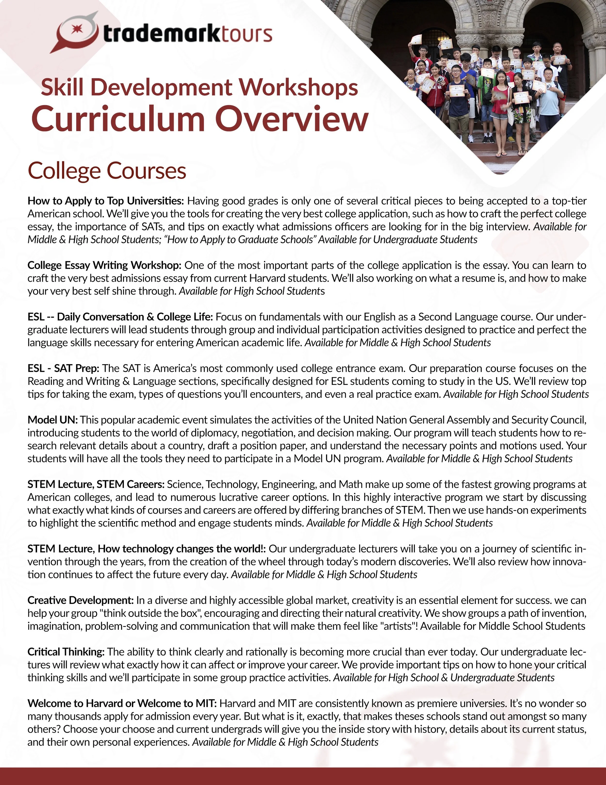 Private Tour of Harvard Details